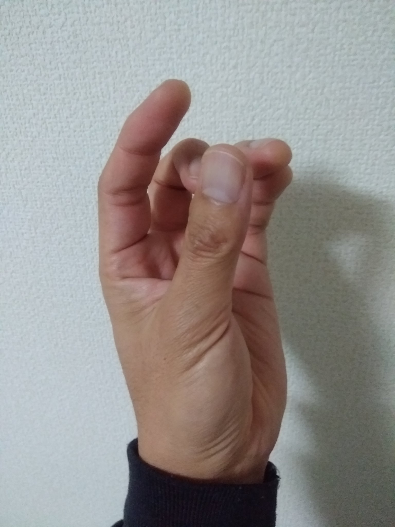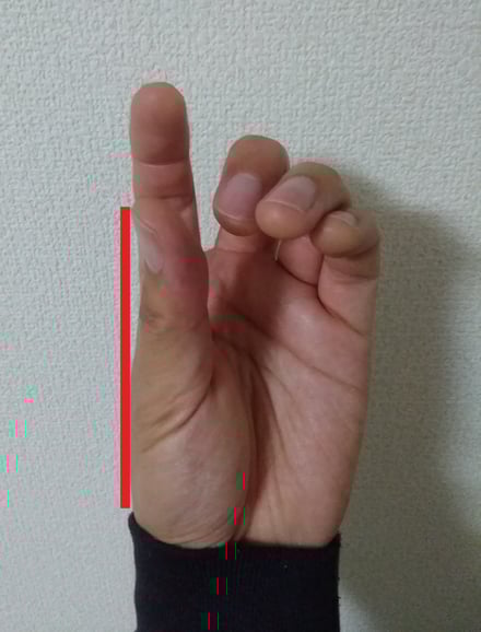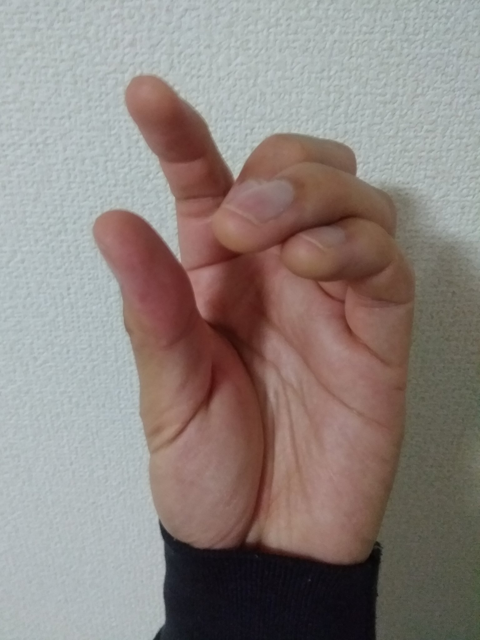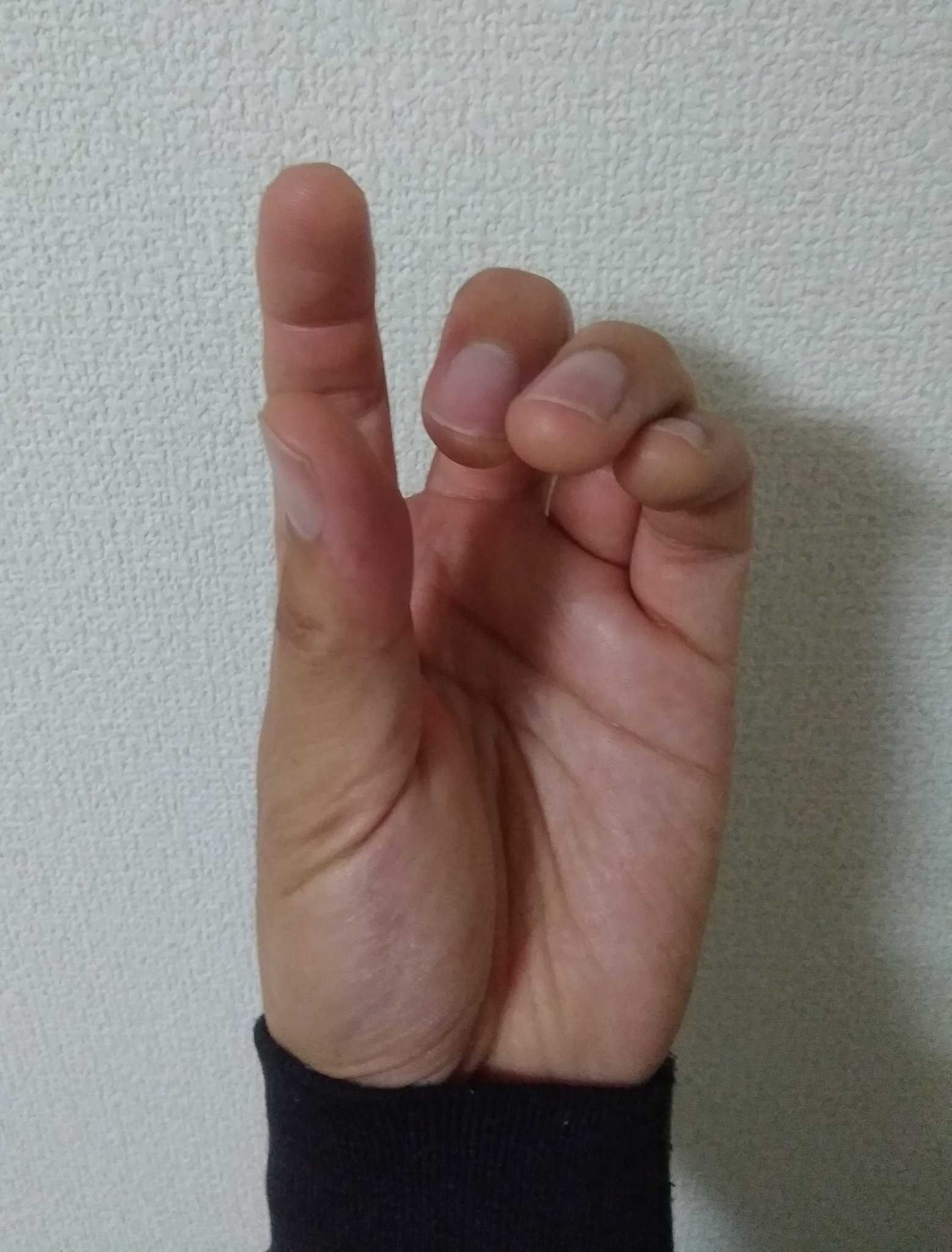 中指・薬指・小指を出来るだけフレットに近づけるために人差し指と中指の間を開ける