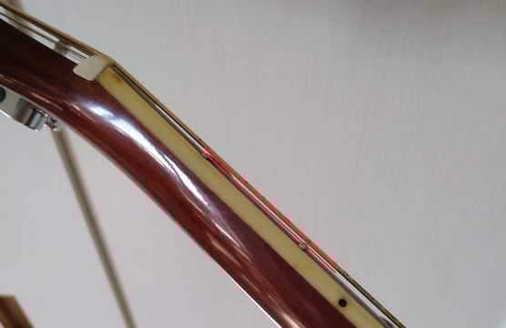 非常に見辛くて恐縮なのですが、私のアコースティックギターのネック部分を真横から写した画像です。